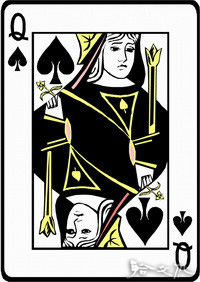 凯撒大帝,罗马共和国终生执政官,出身贵族,花了八年时间征服了高卢全境(大约是现在的法国),还袭击了日耳曼和大不列。前49年,他率军占领罗马,打败庞培,集大权于一身,实行独裁统治。凯撒在罗马帝国硬币上的画像是侧面像。此后,在四张国王K里,只有红方块的国王是侧面像,其头发向内卷,手持战斧。