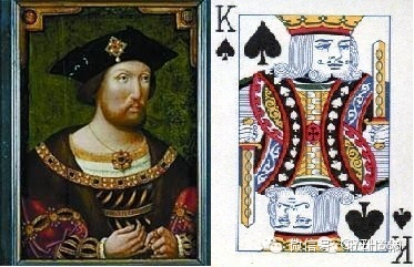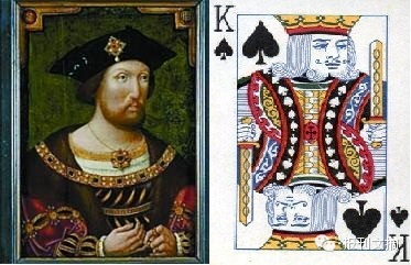 曾有传说认为,亨利八世是四张K的图案的模型;现存最古老的英国扑克牌的四张K的人像图案上,都有与亨利八世一样的卷曲的向两边分开的小胡须和络腮胡子。