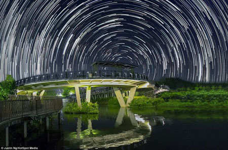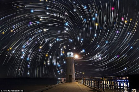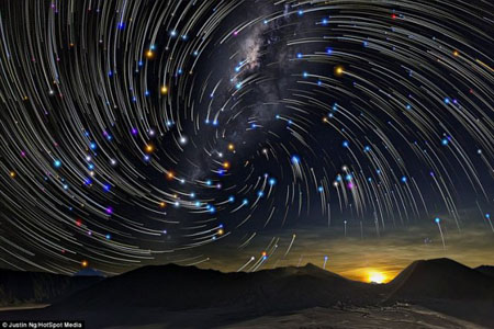 合成星轨是用大量的照片叠加而成的。叠加后的照片中星轨就像一个在半空中的漩涡,或是坠落地面的星线。Locardi告诉我们任何小的相机设置都会对最终的成片造成巨大的的影响。
