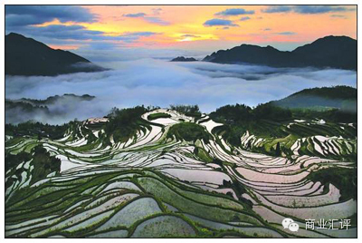 浙江云和梯田。“云和”的字面意思是“祥和的云朵”。1000多年来,云和以及周边的梯田已经成为当地农民们赖以生存的家园。层层迷宫似的梯田在海拔2001400米不等的山峦里蜿蜒盘旋,最多可叠700层。阴雨天气最适于梯田观光,此时河水蒸发的雾气,笼罩在梯田上方,随风轻轻浮动,形成海市蜃楼般的农田美景。门票:80元/人。云和县位于丽水市西南67km处。在丽水火车站可以搭乘到云和的往返班车。