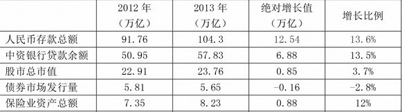 信托规模大还不要紧,最要紧的是,信托公司的集合资金信托计划是“刚性兑付”的。按照潜规则,当信托计划投资失败的时候,信托公司需要以其自有资金垫付给投资人,而当其自有资金无法垫付的时候,要其股东垫付。信托公司在中国一共69家,他们的股东都是谁呢?中信、平安集团、中航工业集团、中铁集团、中化集团、人保保险集团、建设银行、兴业银行、华融资产管理、东方资产管理……官方在公开场合一直不承认“刚性兑付”的存在,君不见,中诚信托30亿的信托计划投资失败,30亿啊!搁一般金融机构够破产好几回了,大家也都盼着打破刚性兑付,但是,刚性兑付岿然不动!就这样,信托的刚性兑付已经成为了老百姓和一些机构的默认假设,而信托的收益通常在8-12%之间,高于债市,而股民对股市这两年已经失去信心了,于是,大量的资金从银行、股市、债市流入到以信托为主的非标市场。这个非标市场,就像一个巨大的资金黑洞一样,疯狂地吞噬货币,从而造成了中国“股债双熊”的看似不可思议的罕见局面,这些,都是中国特色。由下表可见,2013年度新增12.54万亿人民币存款,增长13.6%,在几个主要项目中,中资银行人民币贷款总额增长6.88万亿,增速13.5%,达到平均速度;股市总市值仅增长3.7%(其中主板市场从2012年底的2269.13点下跌到了2115.98点,下跌了6.75%;总市值的增长靠的是创业板增长72.75%和中小板增长29%),债券市场更是下跌了2.8%,只有信托一枝独秀,增长高达45.9%!看了这个表,大家就应该能非常清楚地理解为什么2013年的股市、债市都是熊市了。