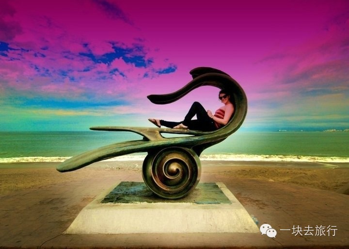 19. 在墨西哥Puerto Vallarto,坐在沙滩雕塑中。