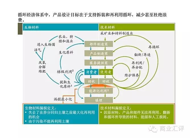 循环经济的理念是以“恢复或还原”取代原来的“处理或丢弃”。其根本目的是告别那种“获取、制造和处理”的系统,不断优化设计出可反复拆装并再利用的产品 。这一革新以材料为切入点,材料被视为高价值的、可再利用的存货,而不是仅在整个经济循环中运行一次的生产要素。要体会其规模有多大,不妨看一下快速发展的消费品行业:该行业每年用掉价值达3.2万亿美元的材料,其中约80%未予回收。