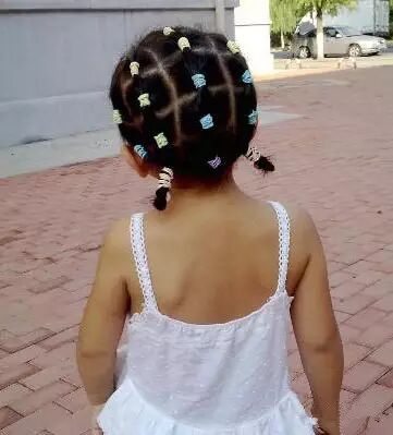 很多妈妈喜欢扎这种满头小辫,花点心思就能与众不同。