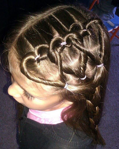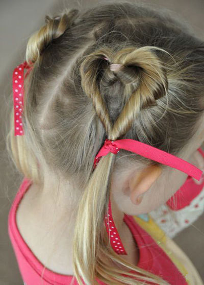 在脑后编出一个心形的造型,会给你的小女孩一个大大的惊喜。