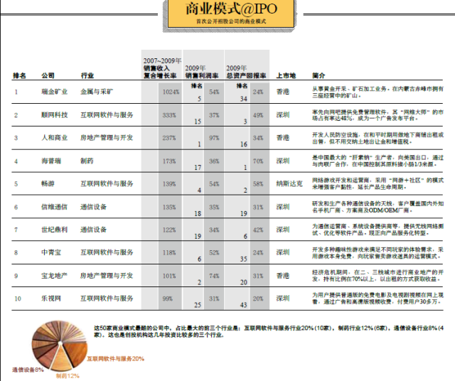 然而很长一段时间里,内地资本市场更鼓励重资产企业上市(轻资产企业往往去美国或香港上市),这种情况下,想要从中找到好的商业模式不易。直到中小板和创业板推出之后,情况才有所改观。