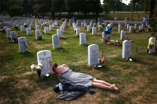 玛丽·麦克休哀悼她失去的未婚夫,詹姆斯·里根中士。“60区”——华盛顿一个大墓地的一个新区——是数百名死于伊拉克和阿富汗美国士兵的最后安息地。约翰·摩尔