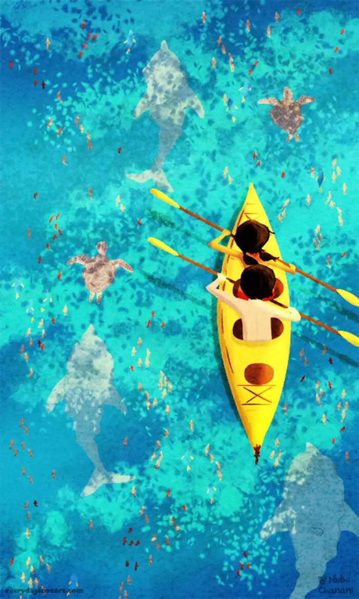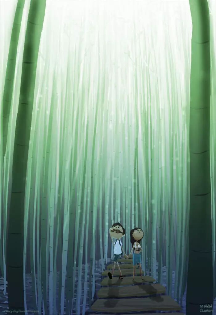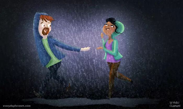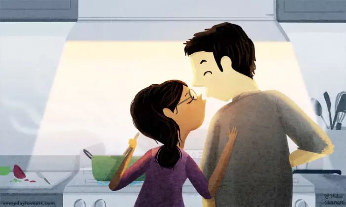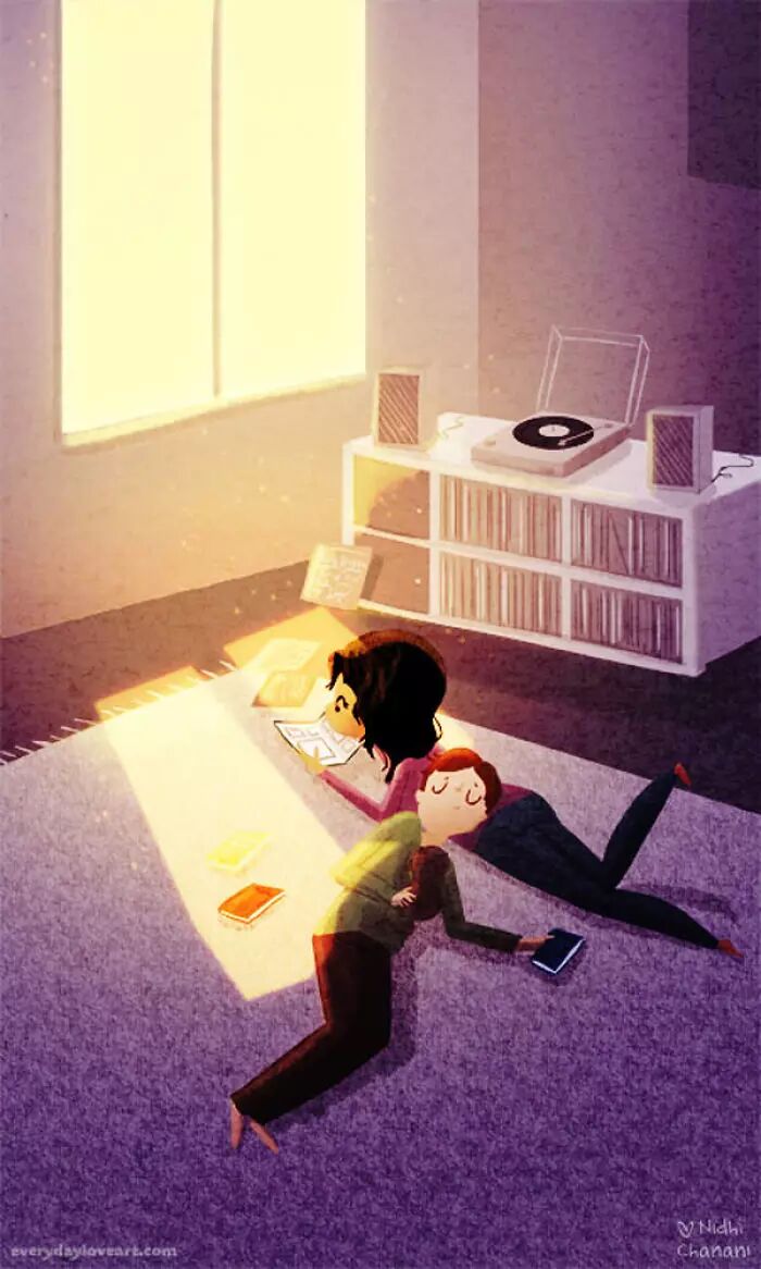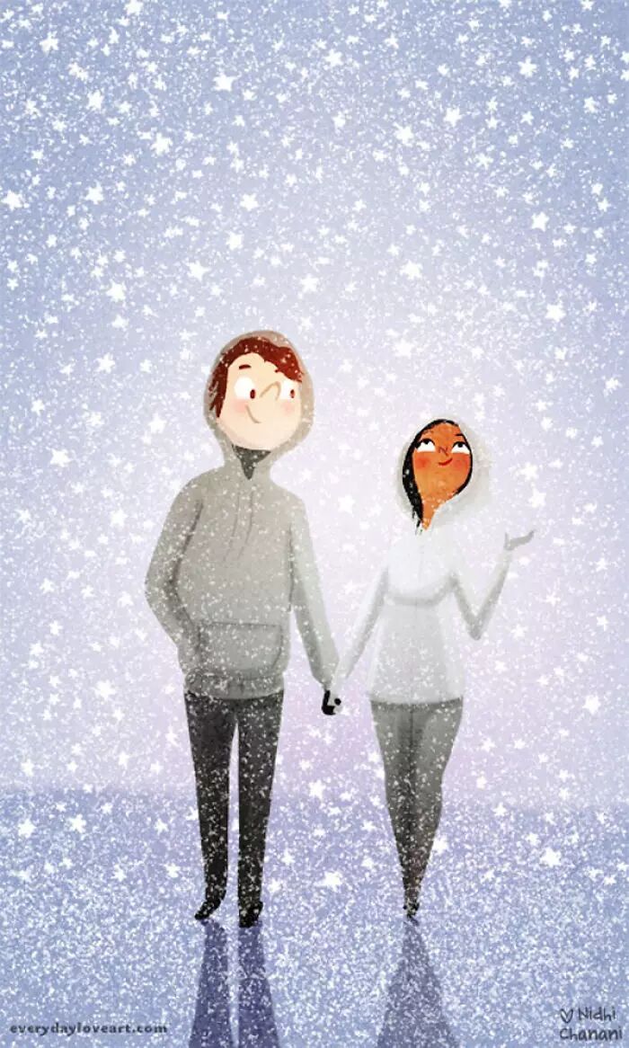 细腻的女插画师Nidhi Chanani创作了一组浪漫的画作,在她的画中,生活就是由一个个充满爱意的小确幸组成的,有时是一个轻吻,有时是同看一场暖橙色的日落。恋人之间最温暖和美好的小事,也许就是这样了。