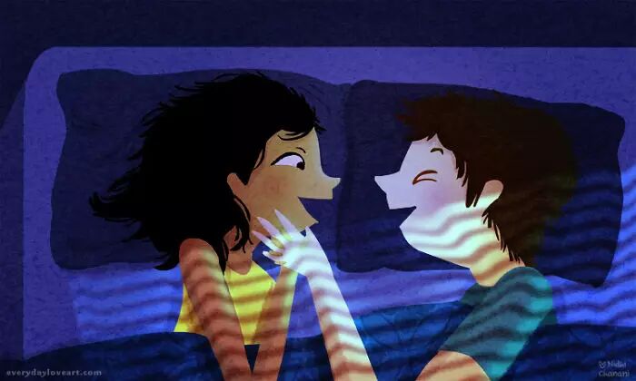 躺在床上聊天,明明每天都在一起还有说不完的话,什么都可以和你聊。