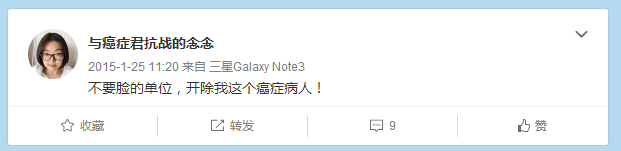 “不要脸的单位,开除我这个癌症病人!”她的情绪,全部写在这条15个字的微博里。
